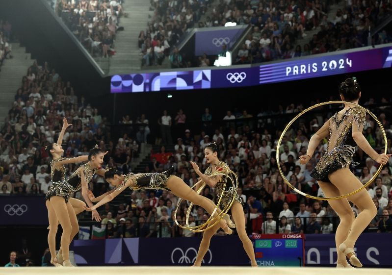 8月10日,在巴黎奥运会艺术体操集体全能比赛中,中国队获得冠军。
