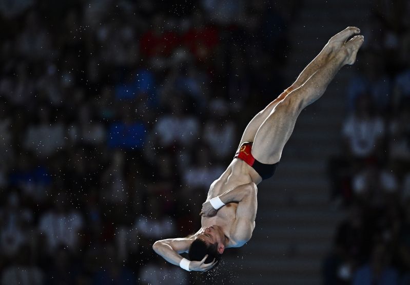 8月10日,在巴黎奥运会跳水男子十米台决赛中,中国选手曹缘获得冠军,卫冕成功。