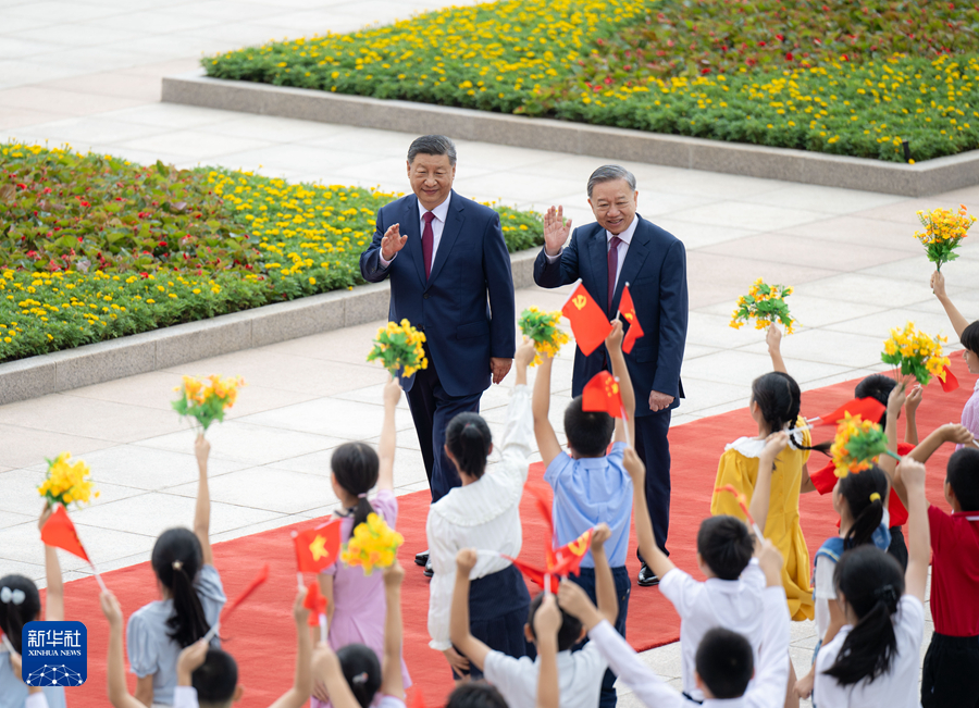 8月19日,中共中央总书记、国家主席习近平在北京人民大会堂同来华进行国事访问的越共中央总书记、国家主席苏林举行会谈。这是会谈前,习近平在人民大会堂东门外广场为苏林举行欢迎仪式。新华社记者 姚大伟 摄
