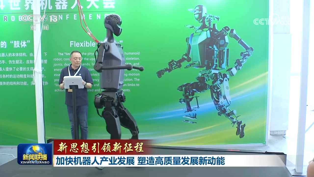 您现在看到在跑步机上以每小时6公里的速度稳定奔跑的机器人是由北京具身智能机器人创新中心研发的,这款全球首例能够拟人奔跑的纯电驱全尺寸人形机器人还能作为母平台进行灵活扩展和迭代,满足不同场景应用需求。在本次世界机器人大会上,169家全球头部企业带来600多件(套)创新产品,其中,首发新品60余款,还有来自10多个国家的7000多支队伍进行竞赛。