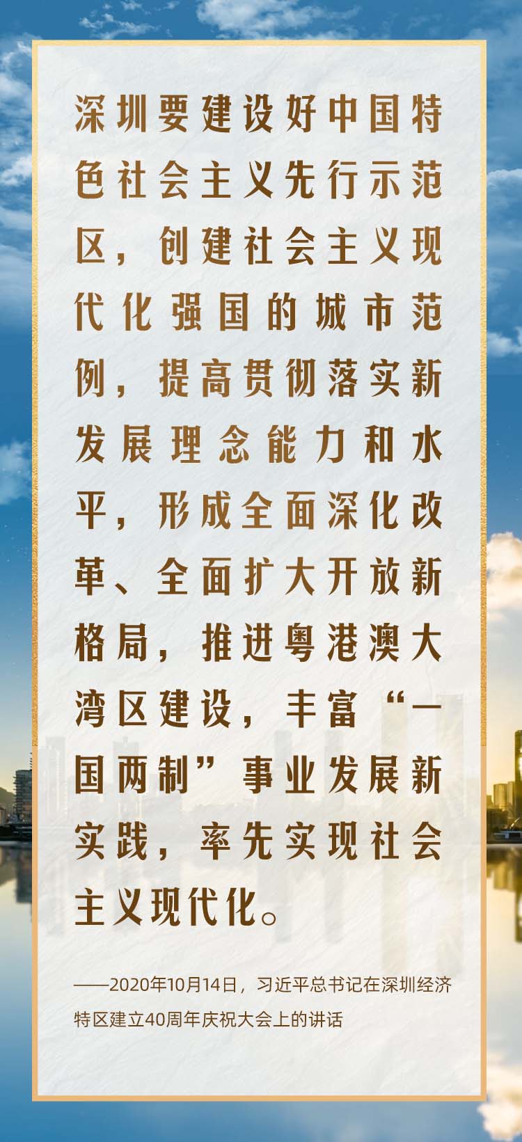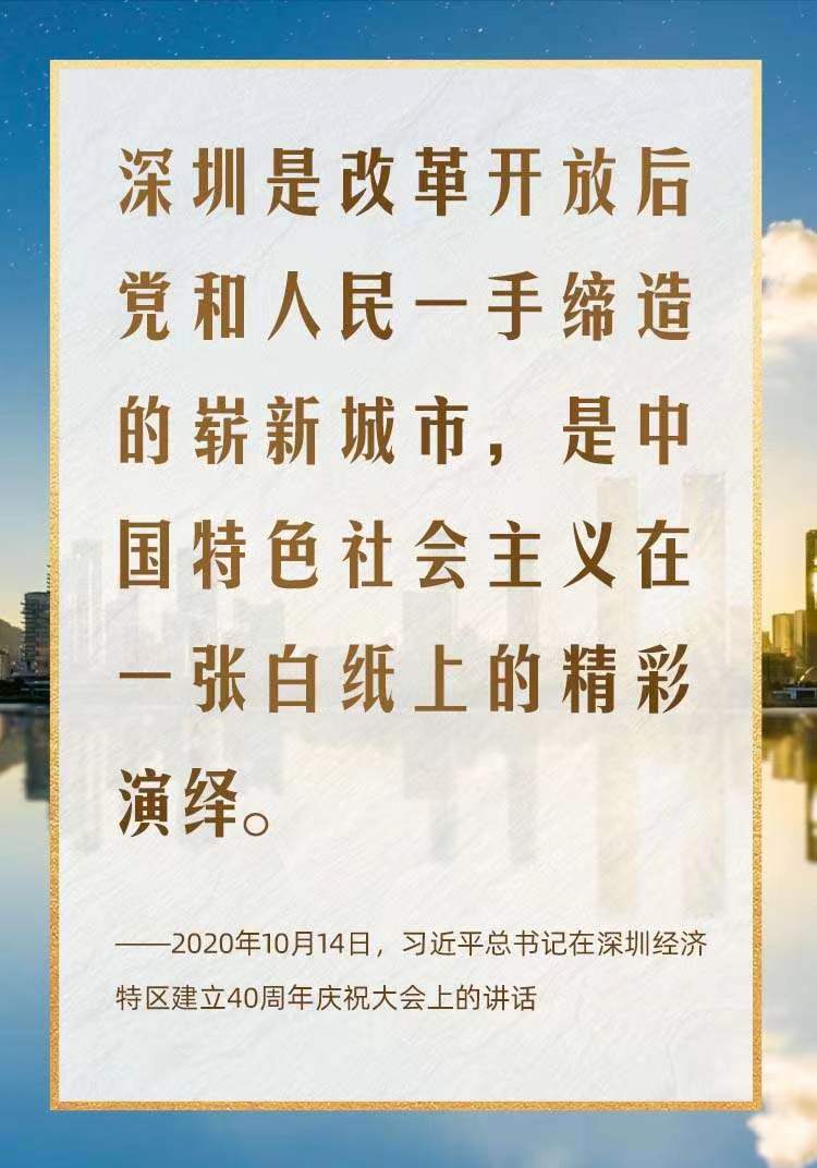 2020年10月,在庆祝深圳经济特区建立40周年之际,习近平总书记又一次来到这里,出席庆祝大会,强调改革不停顿、开放不止步,在更高起点上推进改革开放,推动经济特区工作开创新局面。