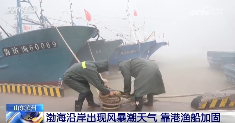 此外,受弱冷空气和出海气旋的共同影响,在山东滨州渤海沿岸部分地区还出现风暴潮天气。目前,当地正处于伏季休渔期,大部分渔船都停靠在港。当地海洋和渔业部门提前行动,加强了对靠港渔船的巡逻,加固渔船缆绳。其余部分在海洋牧场作业的养殖渔船在风暴潮来临前也全部进港。