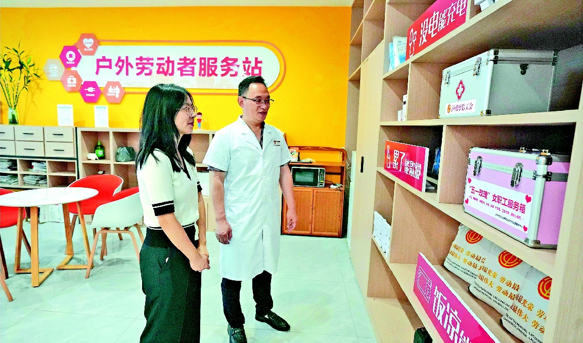 记者和孙雨在泸州市新就业形态劳动者服务中心工会驿站参观 四川工人日报记者邓孝禹摄