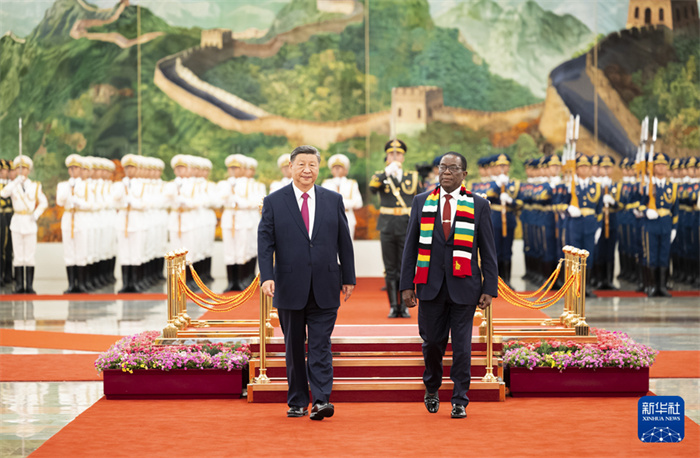新华社北京9月3日电(记者郑明达、袁睿)9月3日下午,国家主席习近平在北京人民大会堂同来华出席中非合作论坛北京峰会并进行国事访问的津巴布韦总统姆南加古瓦举行会谈。