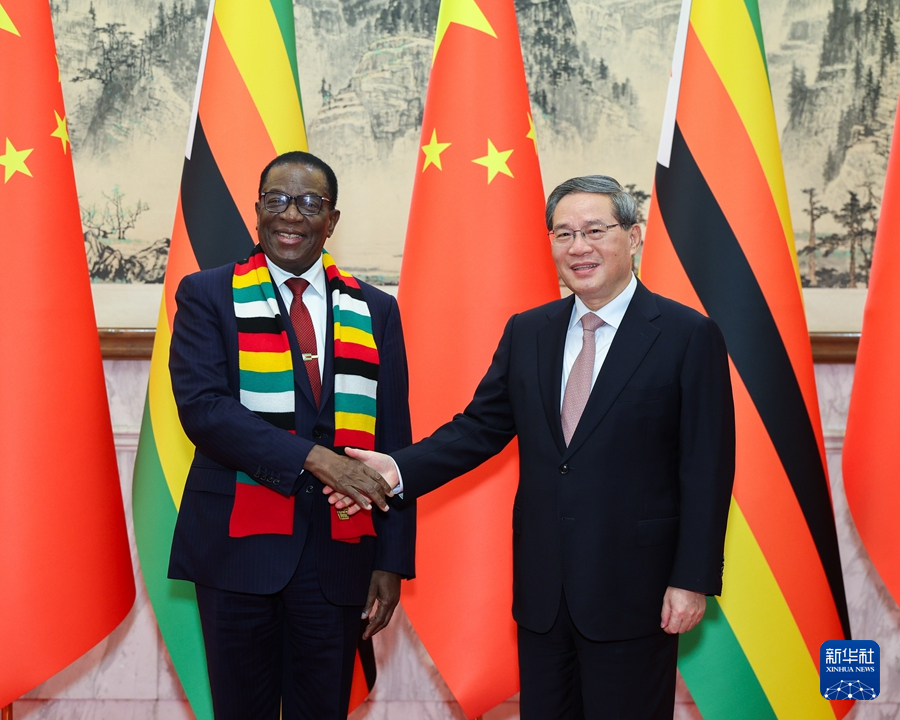 9月3日下午,国务院总理李强在北京钓鱼台国宾馆会见来华出席中非合作论坛北京峰会并进行国事访问的津巴布韦总统姆南加古瓦。新华社记者 刘彬 摄