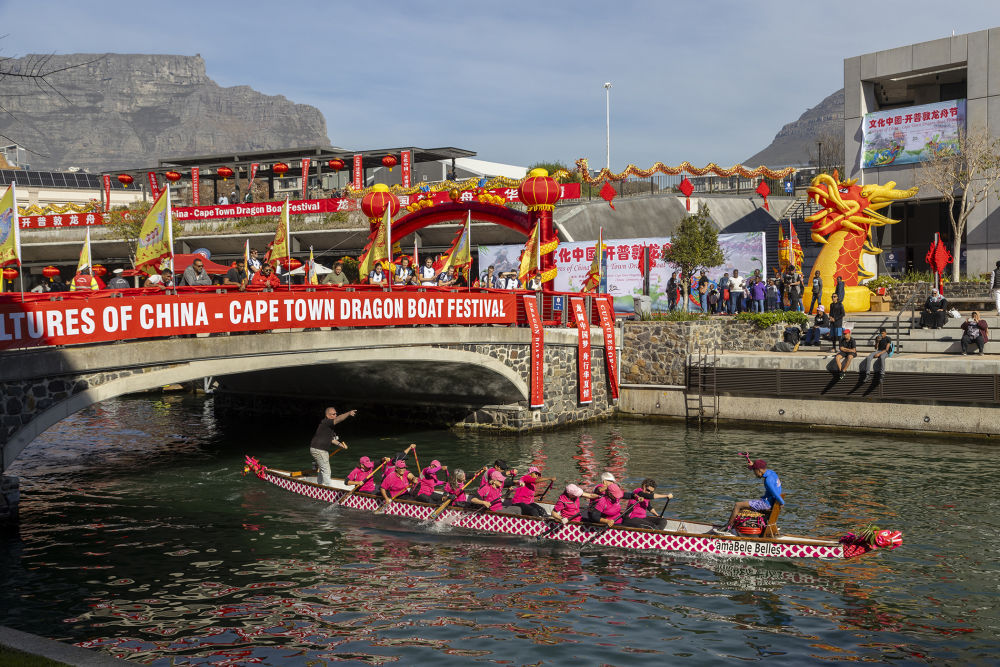 6月8日,人们在南非开普敦参加第二届“文化中国·开普敦龙舟节”比赛。新华社记者王雷摄