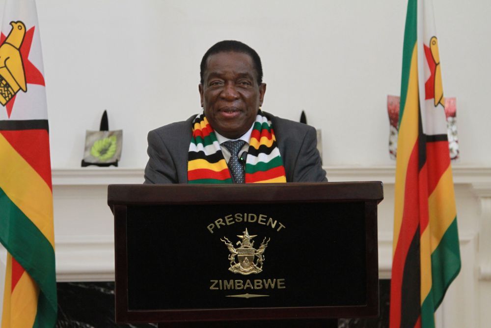8月28日,在津巴布韦首都哈拉雷,津总统姆南加古瓦接受媒体采访。新华社发(塔法拉·穆瓜拉摄)