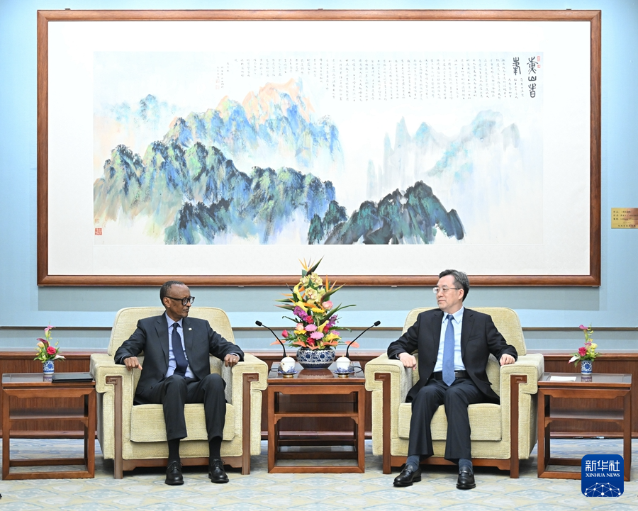 9月3日,中共中央政治局常委、国务院副总理丁薛祥在北京会见来华出席中非合作论坛北京峰会的卢旺达总统卡加梅。新华社记者 李响 摄
