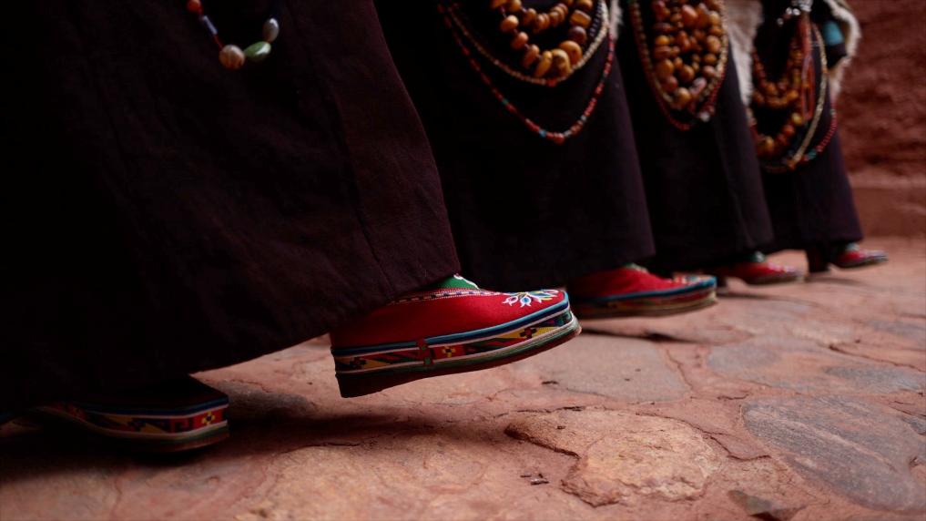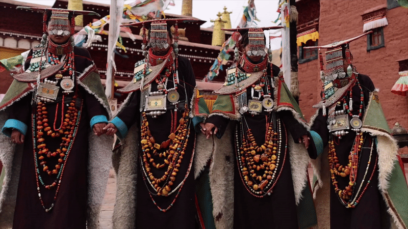 普兰县科迦村里有7户人家保存着7套祖传服饰,一套重达25公斤,装饰有黄金、白银、松石、玛瑙、珊瑚、珍珠等,承载和沉淀了百年时光,堪称“穿在身上的千年史”。