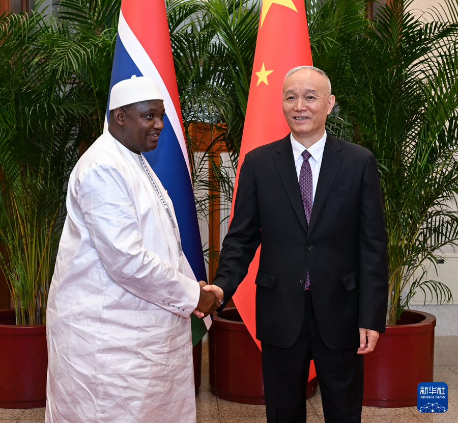 9月5日,中共中央政治局常委、中央书记处书记蔡奇在北京会见来华出席中非合作论坛北京峰会的冈比亚总统巴罗。新华社记者 饶爱民 摄