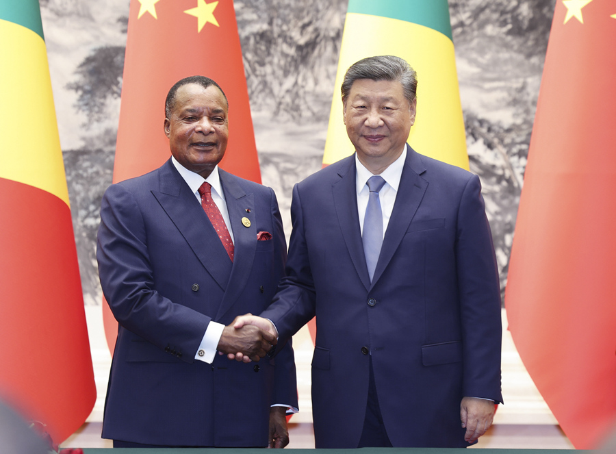 9月6日上午,国家主席习近平在北京人民大会堂同来华出席中非合作论坛北京峰会并进行国事访问的刚果(布)总统萨苏举行会谈。新华社记者 翟健岚 摄