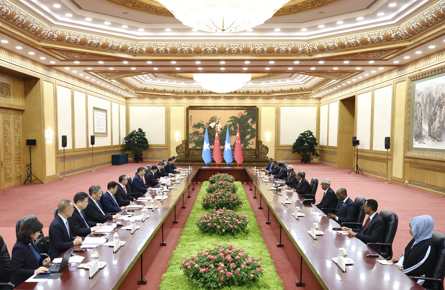 习近平指出,中索友好交往源远流长。索马里是第一个同新中国建交的东部非洲国家,两国友谊历经考验。中方愿同索方秉持建交初心,推动双边关系取得更多新成果,更好造福两国人民。