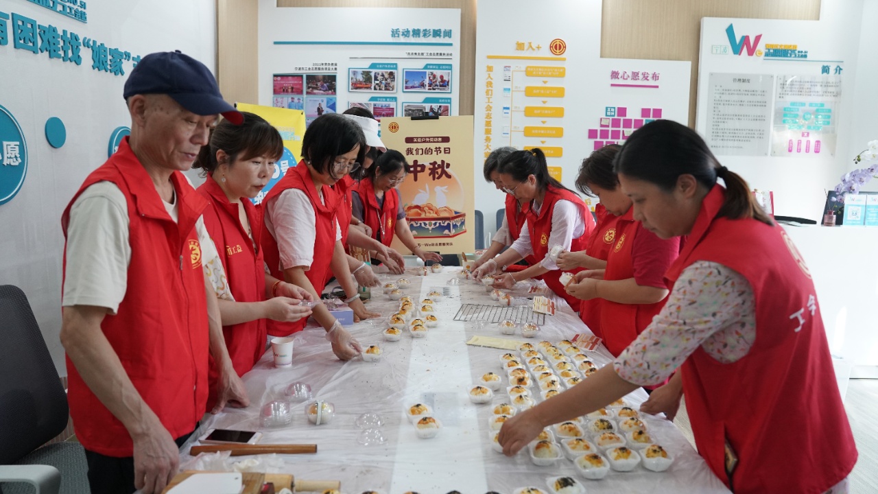 9月5日,浙江宁波市总工会职工服务中心工会驿站举行喜迎中秋·关爱户外劳动者月饼手作活动,15名志愿者现场制作200份蛋黄酥,赠送给环卫工人、外卖配送员、快递员、保安等户外劳动者。当天,该驿站还向户外劳动者提供免费剪发、义诊等服务。