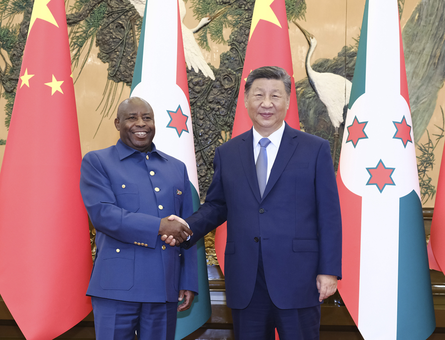 9月6日上午,国家主席习近平在北京人民大会堂会见来华出席中非合作论坛北京峰会的布隆迪总统恩达伊施米耶。新华社记者 翟健岚 摄