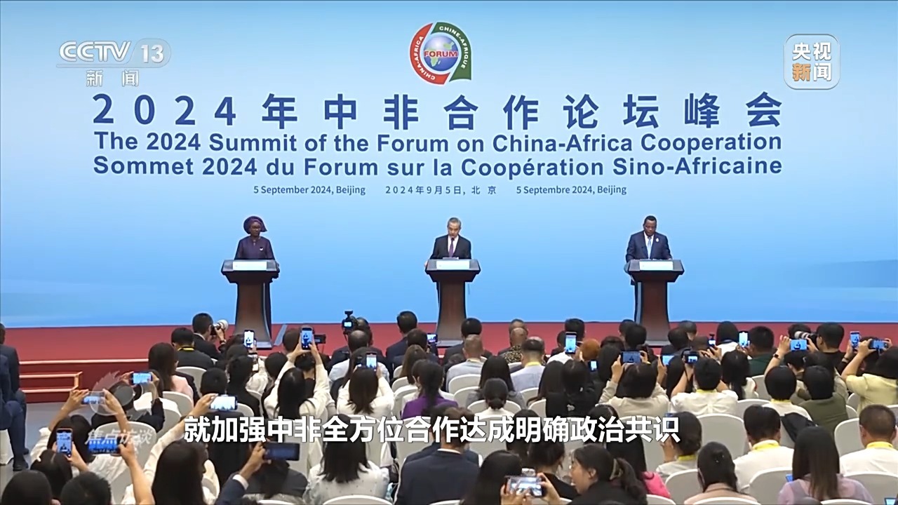9月5日上午,国家主席习近平在北京人民大会堂出席中非合作论坛北京峰会开幕式并发表题为《携手推进现代化 共筑命运共同体》的主旨讲话。当晚,中共中央政治局委员、外交部长王毅同中非合作论坛非方现任共同主席国塞内加尔外长法勒、下任共同主席国刚果共和国外长加科索共同会见中外记者,介绍中非合作论坛北京峰会情况和成果。