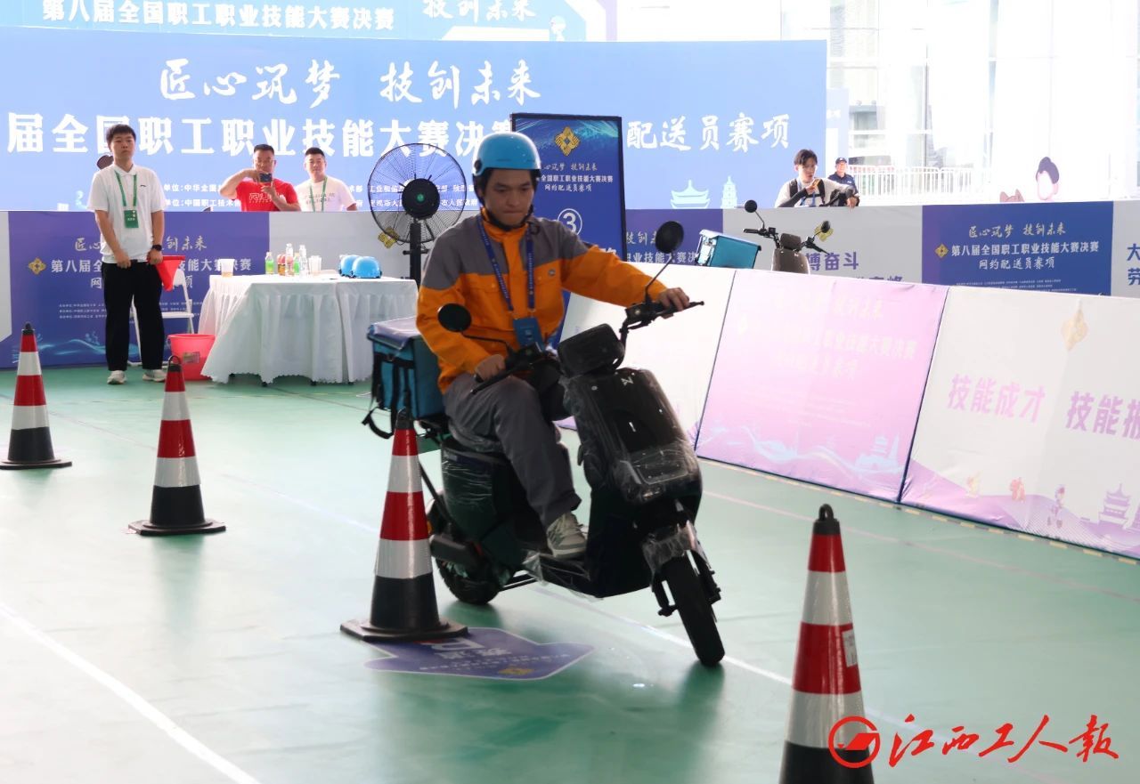 网约配送员赛项是在室外场地举行,配送前准备、订单取送、驾驶技能等环节,全面考核网约配送员的专业基础知识、沟通协调、突发事件处置等综合业务能力,吸引了众多观赛嘉宾和媒体记者的关注。该赛项的裁判长赵宁表示,本次大赛是2024年网约配送职业领域的首次国家级大赛,对行业高质量发展具有重要意义,比赛共有13个考核点位,意味着每位选手的成绩都要经过13位裁判的全过程考核评估。