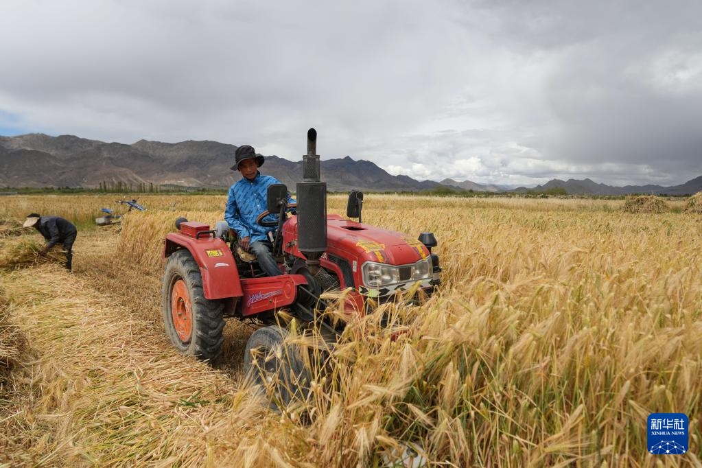 9月10日,西藏日喀则市白朗县巴扎乡农民操作农机收获青稞。新华社记者 晋美多吉 摄