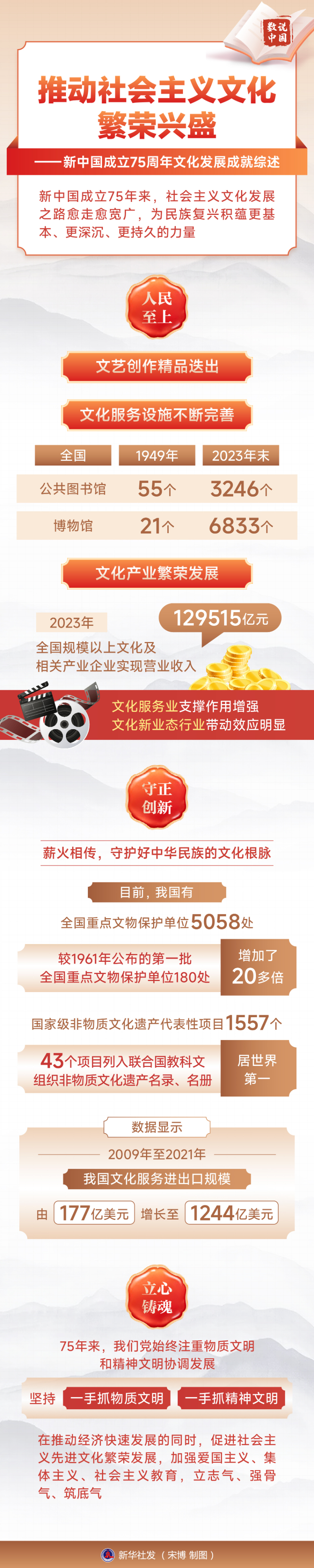 原标题:数说中国·75载辉煌成就|推动社会主义文化繁荣兴盛——新中国成立75周年文化发展成就综述