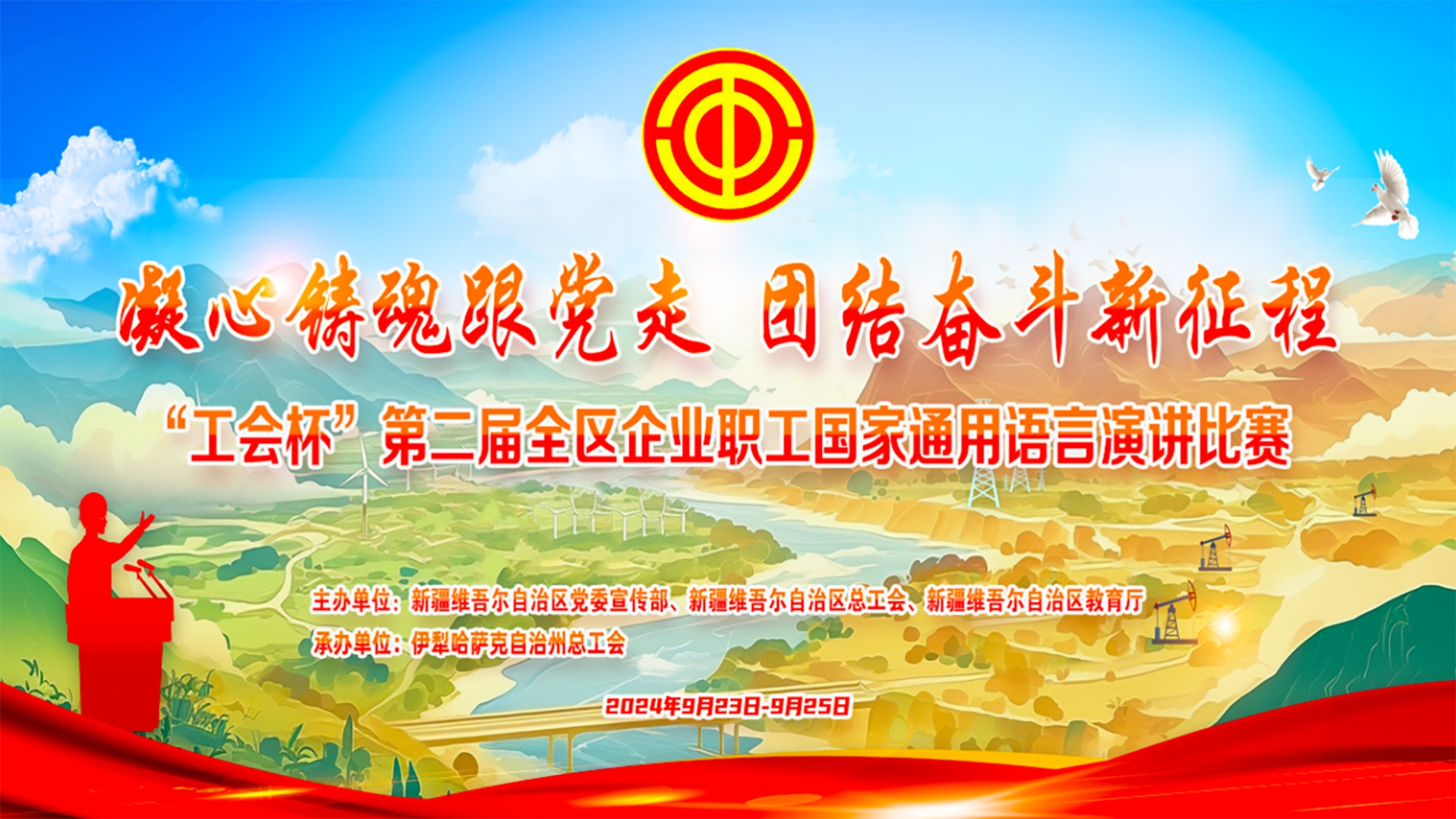 直播回顾丨 “工会杯”第二届新疆维吾尔自治区企业职工国家通用语言演讲比赛颁奖典礼 为深入学习贯彻党的二十届三中全会精神及新疆维吾尔自治区党委十届十二次全会精神,进一步巩固提升全区工会会员、企业职工国家通用语言文字使用能力,从“听说读写”向理解中华文化、增进文化认同拓展,推动“五个认同”深入人心,有形有感有效铸牢中华民族共同体意识。9月25日下午16:00,由新疆维吾尔自治区党委宣传部、新疆维吾尔自治区总工会、新疆维吾尔自治区教育厅主办,伊犁哈萨克自治州总工会承办的凝心铸魂跟党走 团结奋斗新征程“工会杯”第二届全区企业职工国家通用语言演讲比赛颁奖典礼在伊犁融媒体中心举办。中工网首页、视频号、微博同步直播。