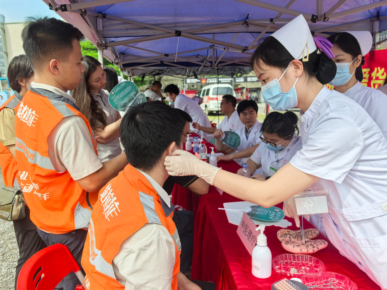 9月25日,在广东省总工会的指导下,广东省职工保障互助会联合广州市总工会和货拉拉广州分公司工会在广州举办以“工会情暖新业态 互保护航送健康”为主题的关爱货车司机健康保障活动,委托广东省工人医院专业的医疗团队“送检上门”,来到位于广州市黄埔区的华南新材料创新园,现场为货拉拉司机进行体检,将工会和职工互助保障组织的关心关怀送到货车司机的心坎上。