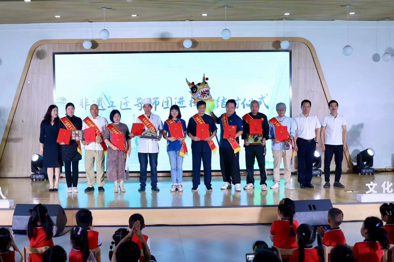 活动现场,进行了“非遗小匠人 文化童传承”匠心培育三年行动计划的发布仪式,为张剑峰等11名非遗工匠们颁发了导师聘书,并为11所幼儿园授牌了“非遗小匠人 文化童传承”匠心基地。