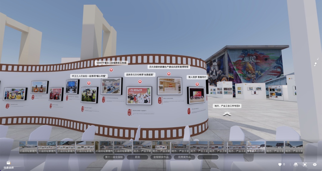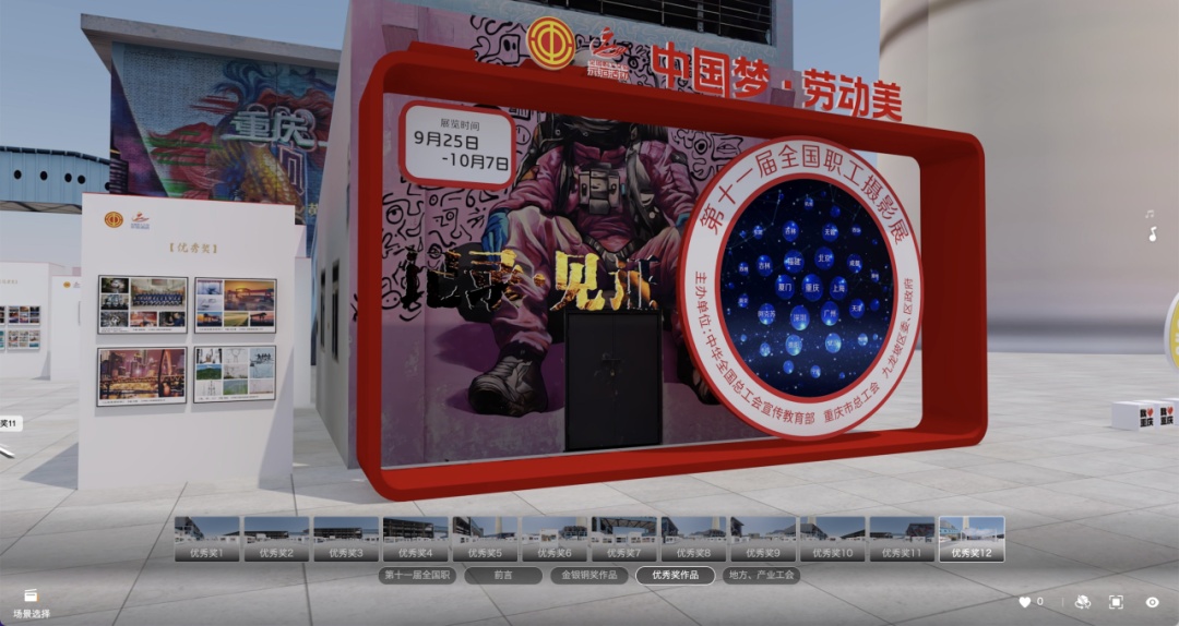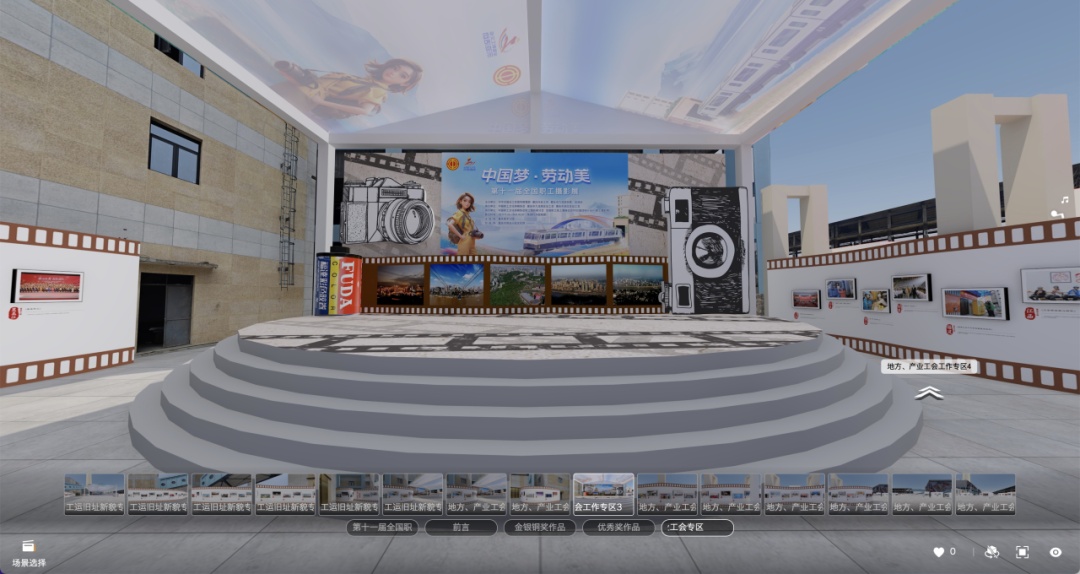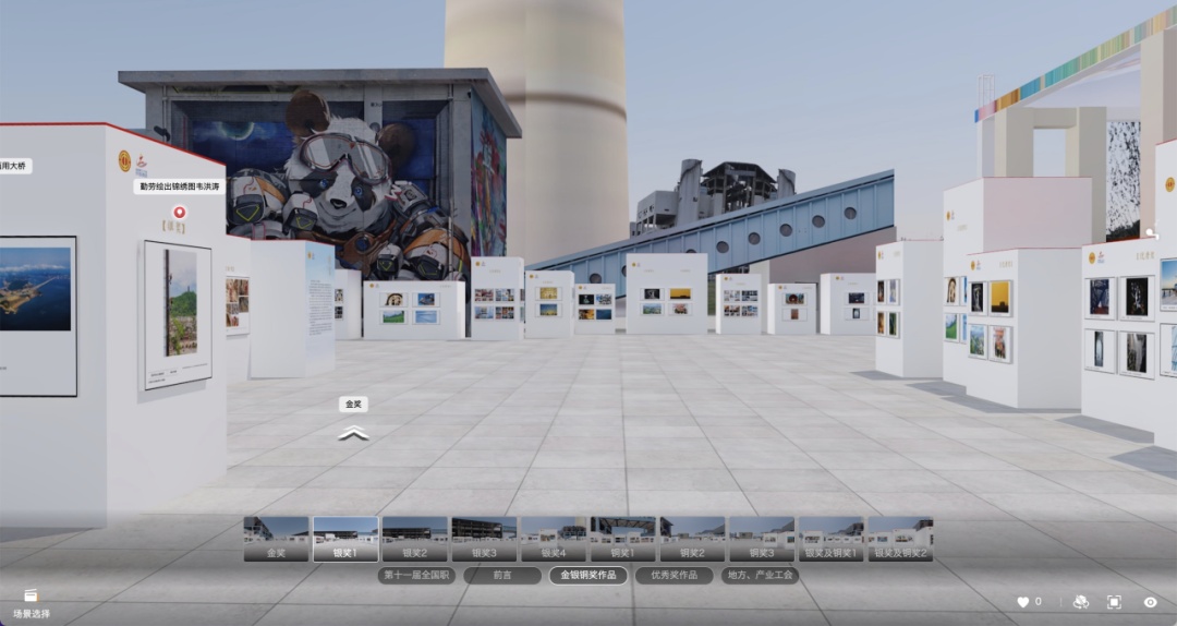 摄影展线上VR展厅分为金银铜作品展区、优秀奖作品展区、地方/产业工会报送作品展区,共计展出413幅(组)作品,所有作品均可在线上永久免费观看。