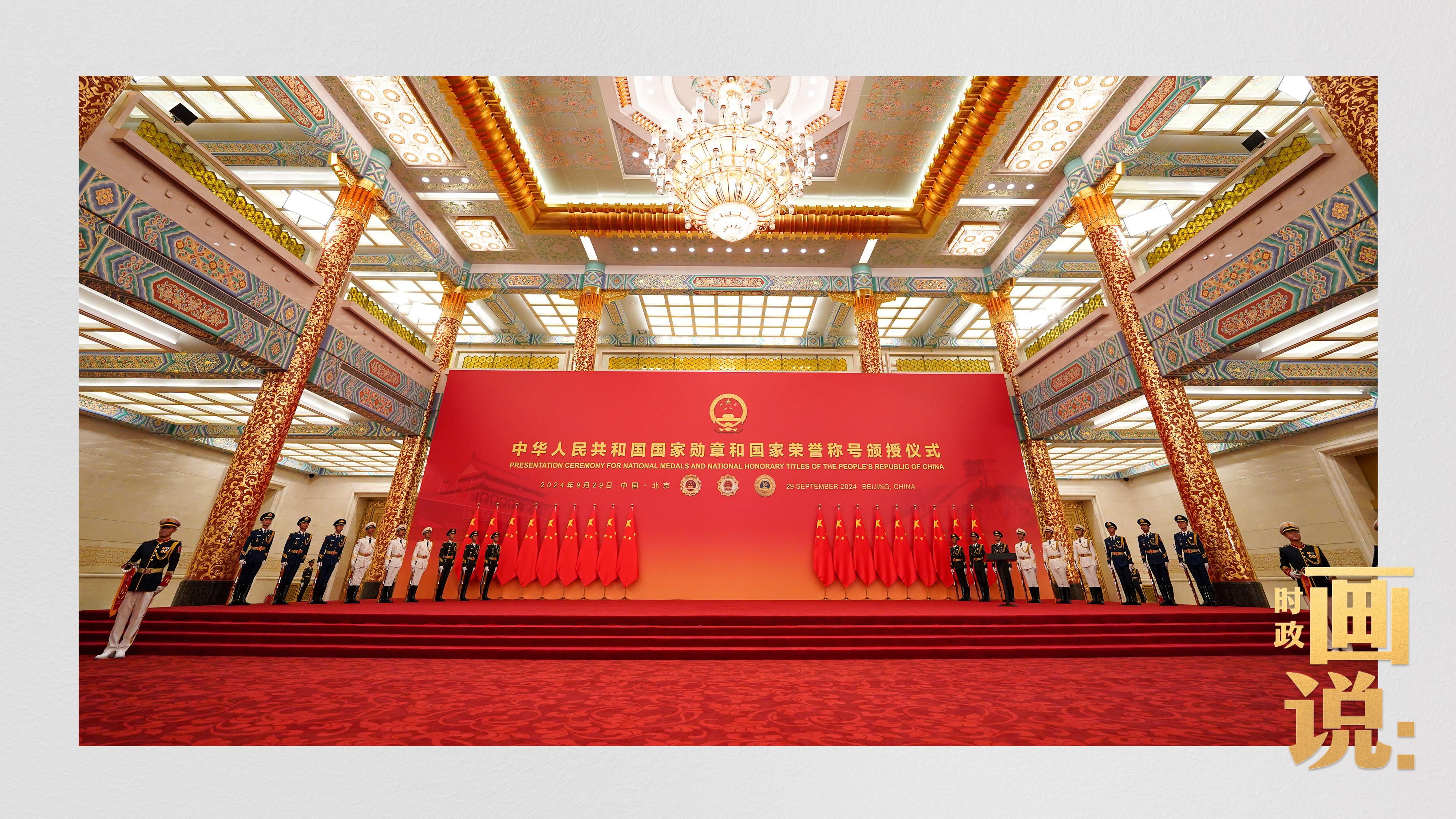 9月29日上午,中华人民共和国国家勋章和国家荣誉称号颁授仪式在人民大会堂隆重举行。中共中央总书记、国家主席、中央军委主席习近平向国家勋章和国家荣誉称号获得者分别授予“共和国勋章”“友谊勋章”和国家荣誉称号奖章并发表重要讲话。