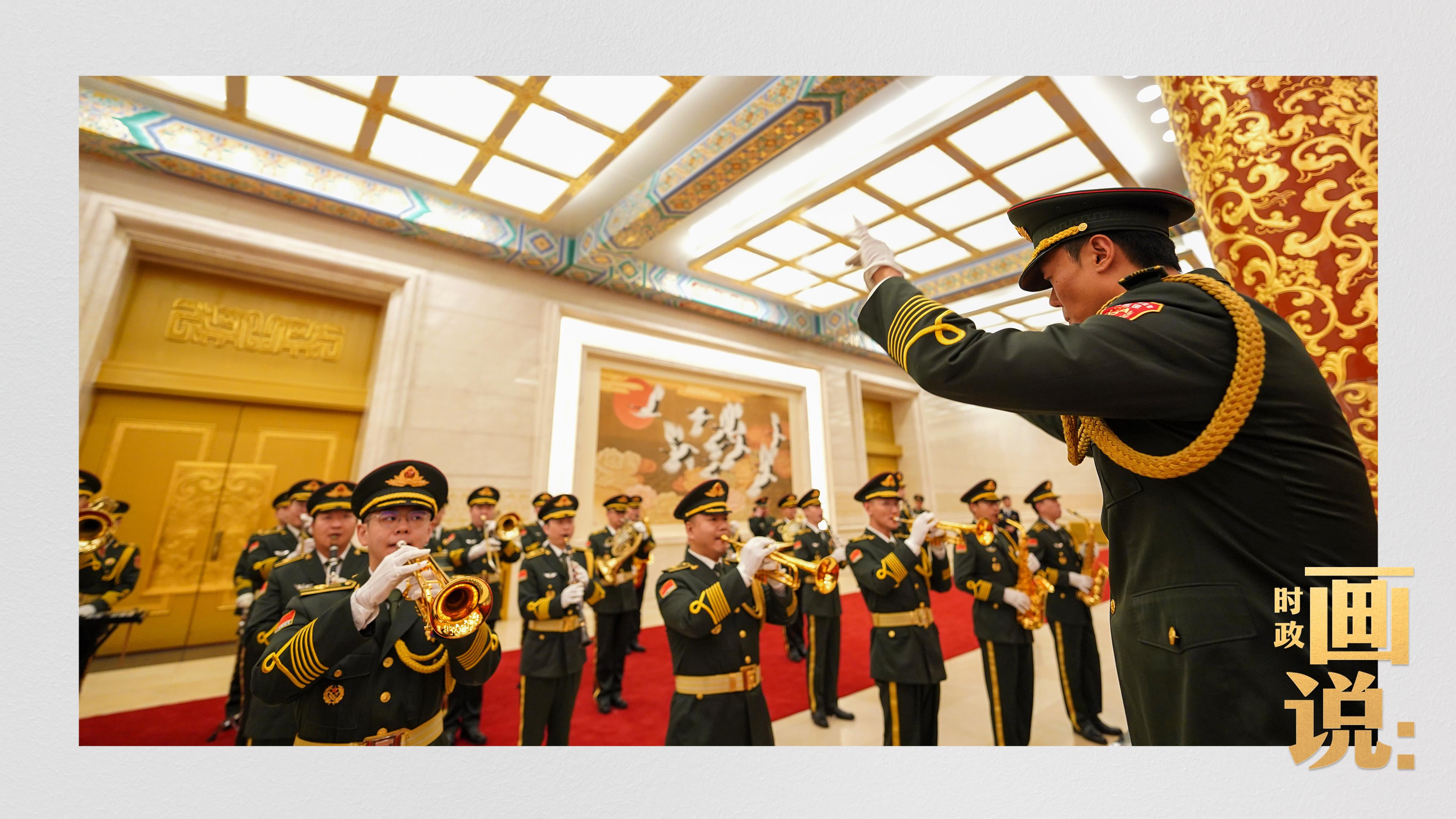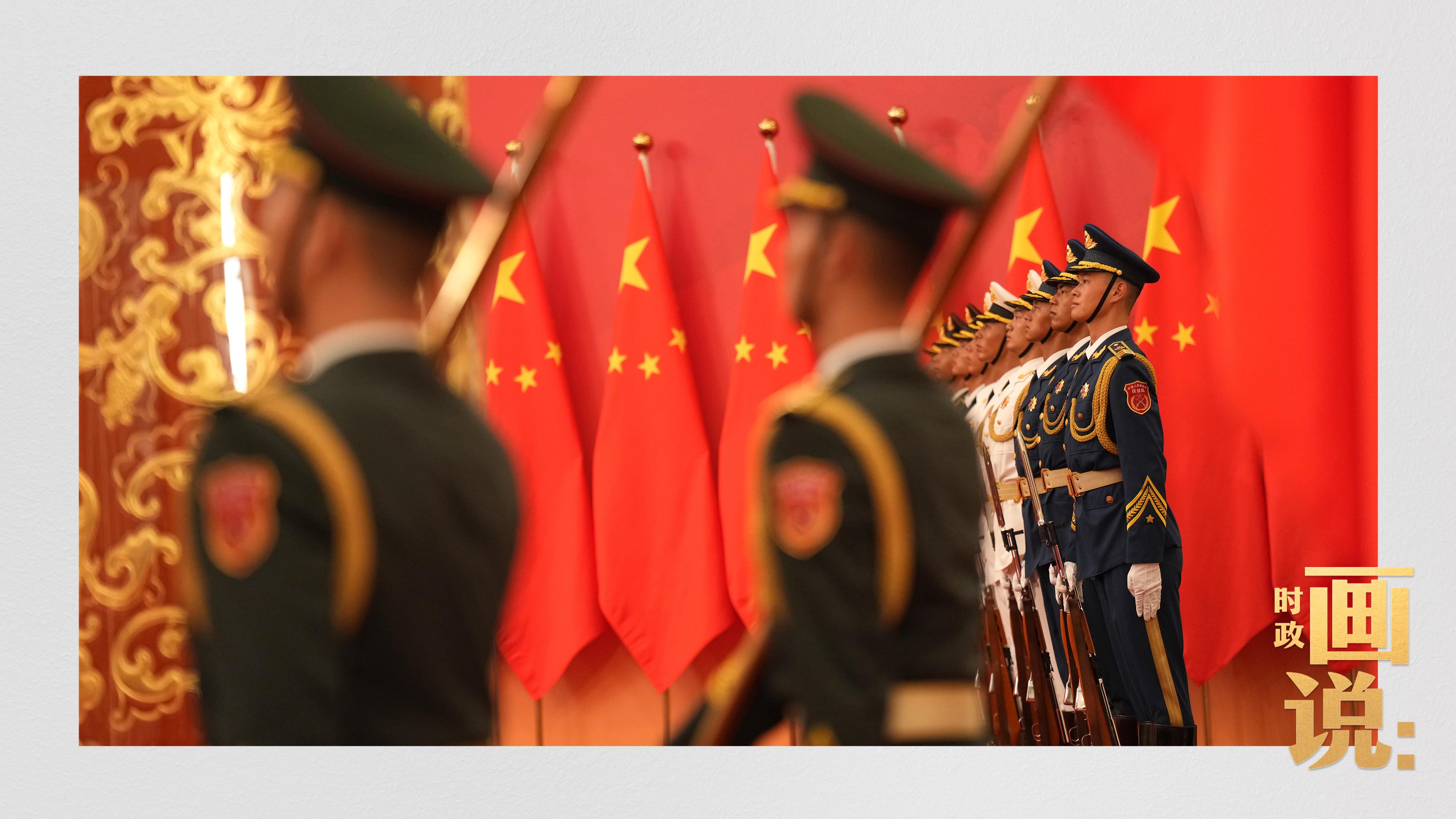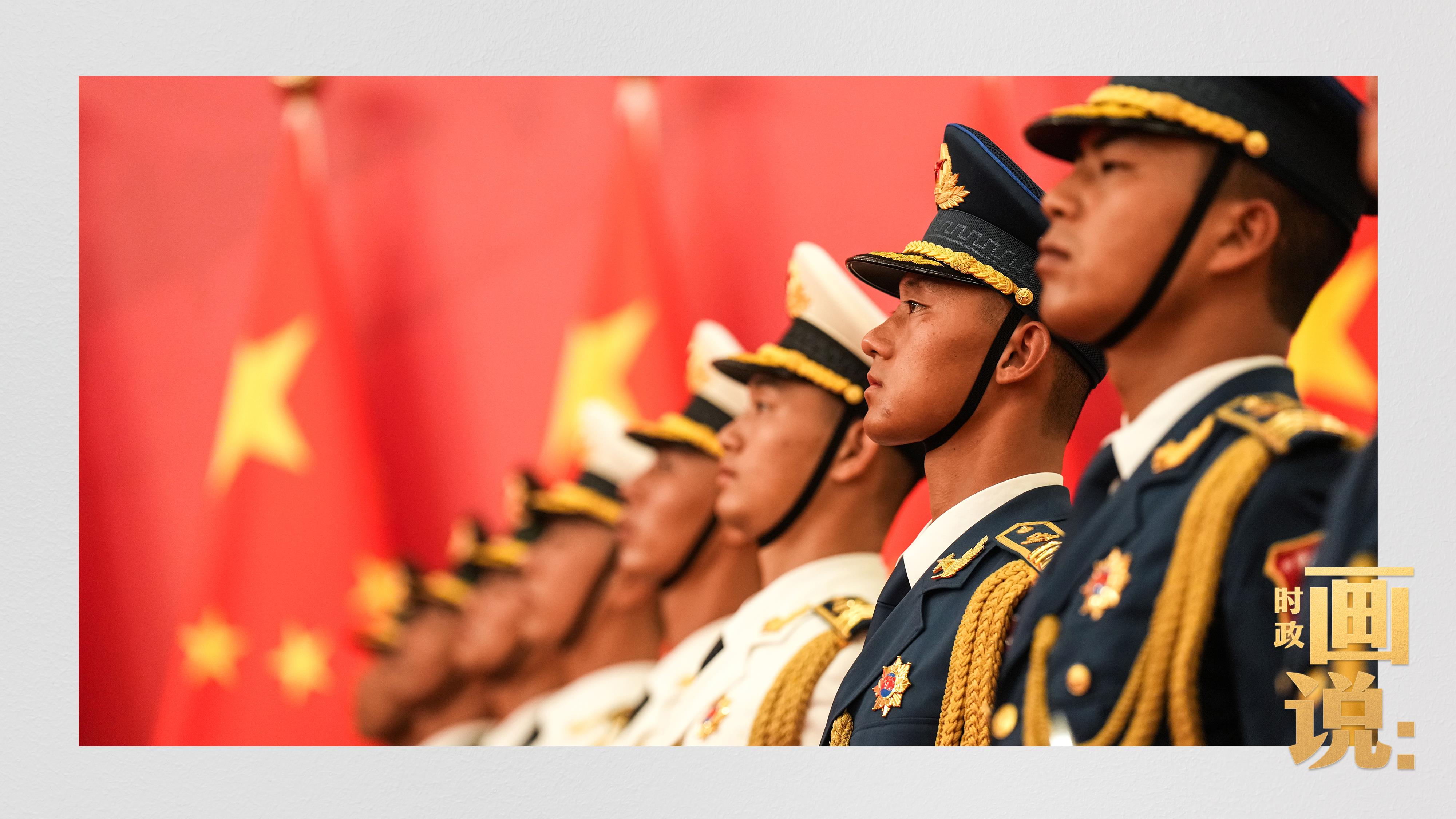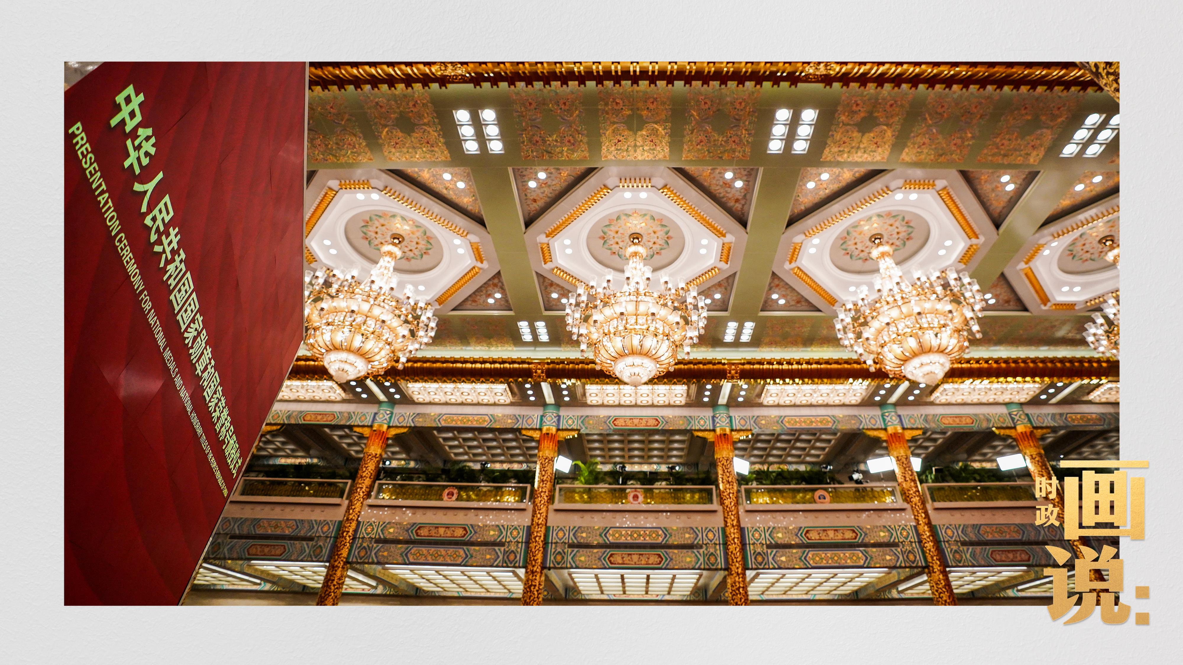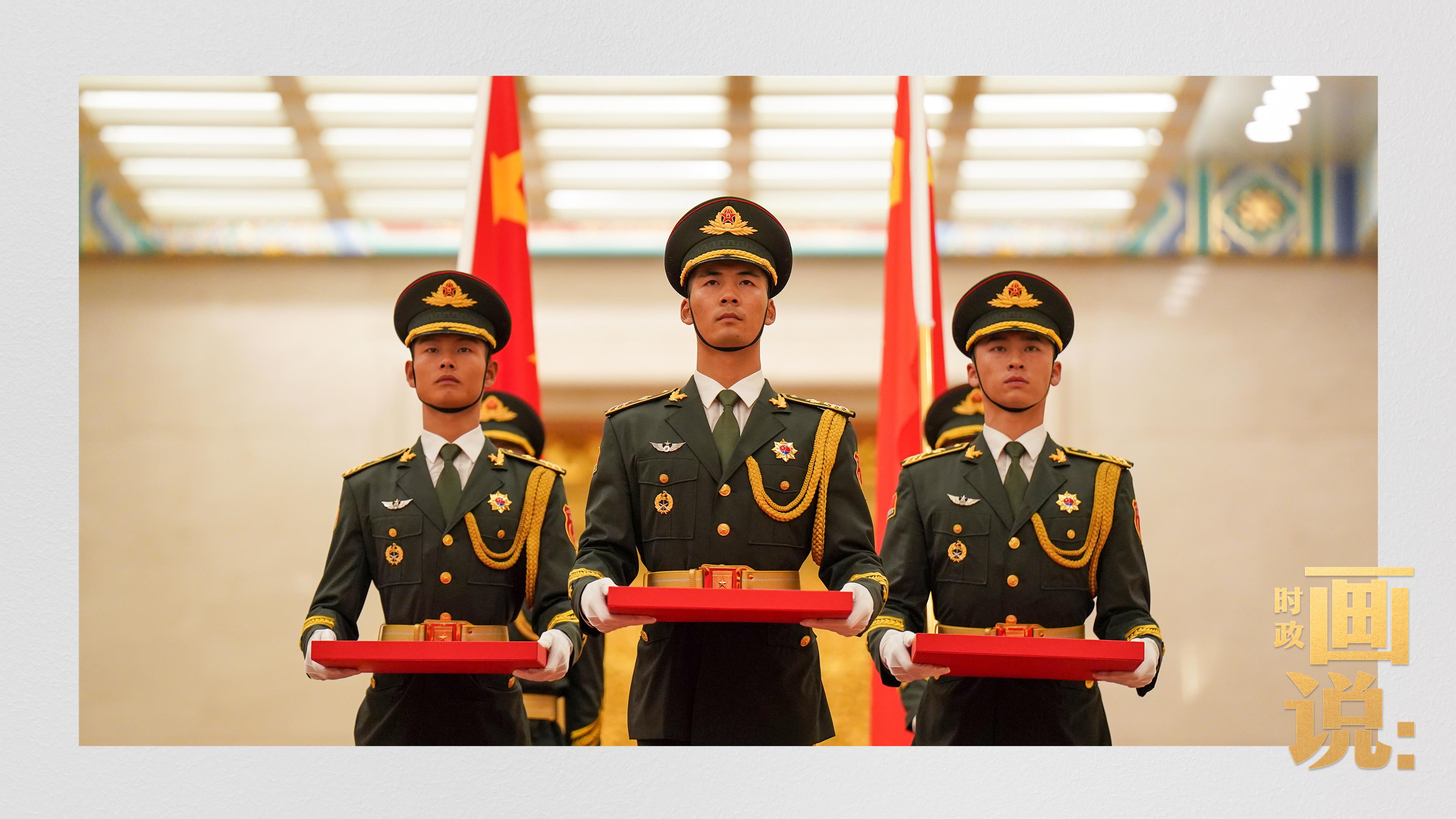 △礼兵护送国家勋章和国家荣誉称号奖章入场。