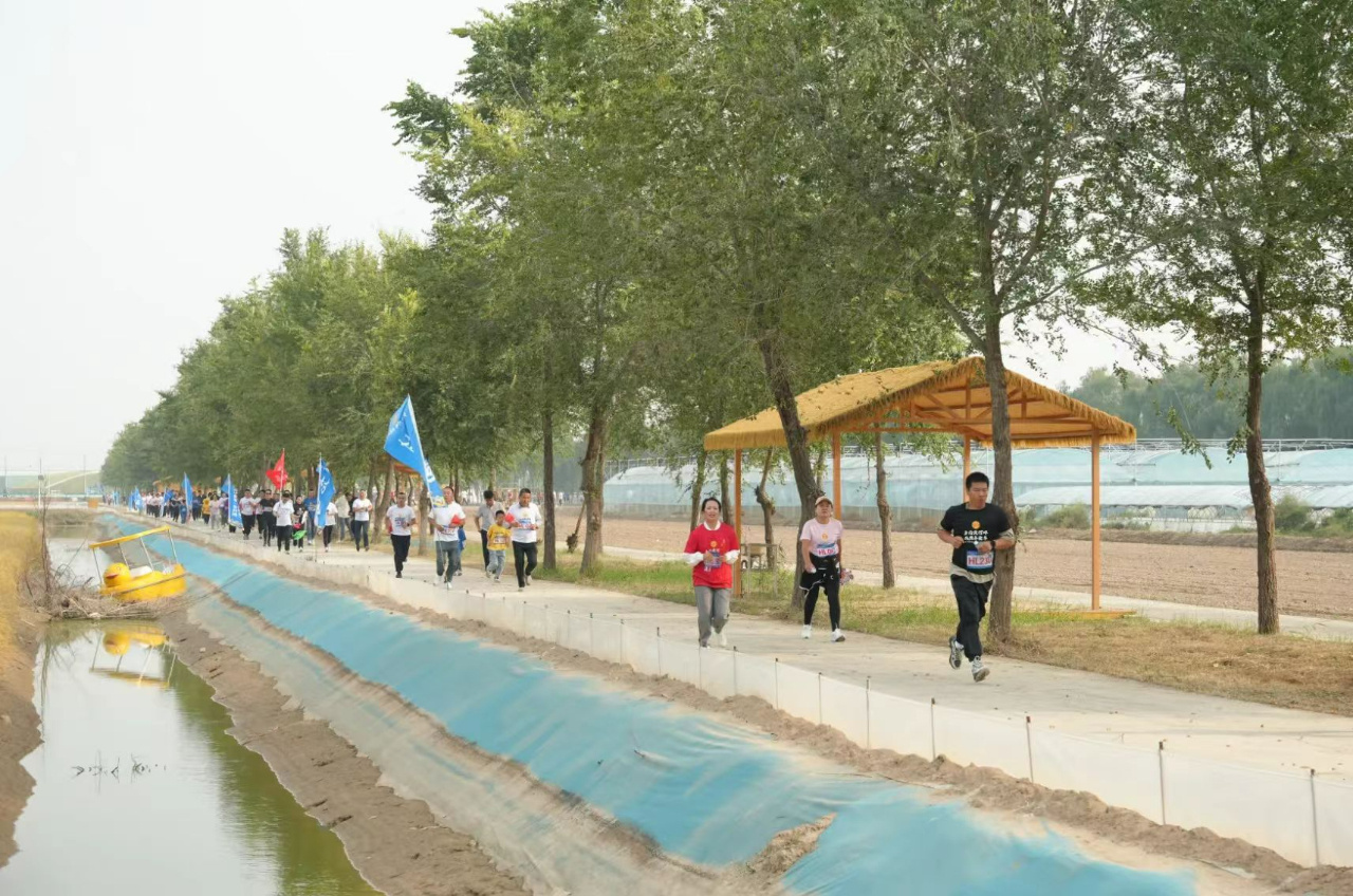 9月28日,宁夏回族自治区银川市贺兰县第一届“乡约黄河畔·共庆丰收年”产业工人(农民工)村跑在立岗镇永兴村花田香蟹主题稻田公园开赛。此次活动由贺兰县总工会、县委宣传部、县委统战部、县教育体育局以及立岗镇等单位共同主办,来自全县的65个村工会代表队共500多名产业工人(农民工)参赛。此次村跑活动全程共4公里,沿途穿越周边乡村风景如画的区域,使选手们在奔跑的过程中得以尽情领略乡村的自然风光与丰收的欢愉氛围。