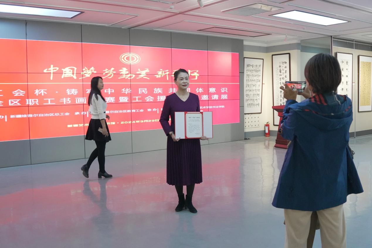 9月29日,中国梦·劳动美·新疆好“工会杯”铸牢中华民族共同体意识全疆职工书画大赛暨工会援疆书画邀请展,在新疆艺术学院举行开展仪式。此次展出196幅作品,在传统展览基础上通过数智化和AI(人工智能)技术,提供沉浸式、互动式观展体验。