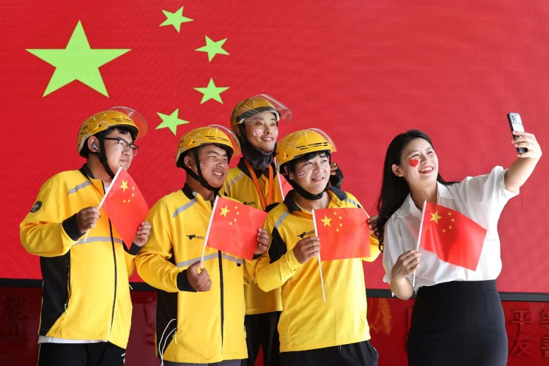 安塞黄矿新能源开发有限公司的职工们发起和参与了 “奋斗在岗位 我与国旗合个影”活动。