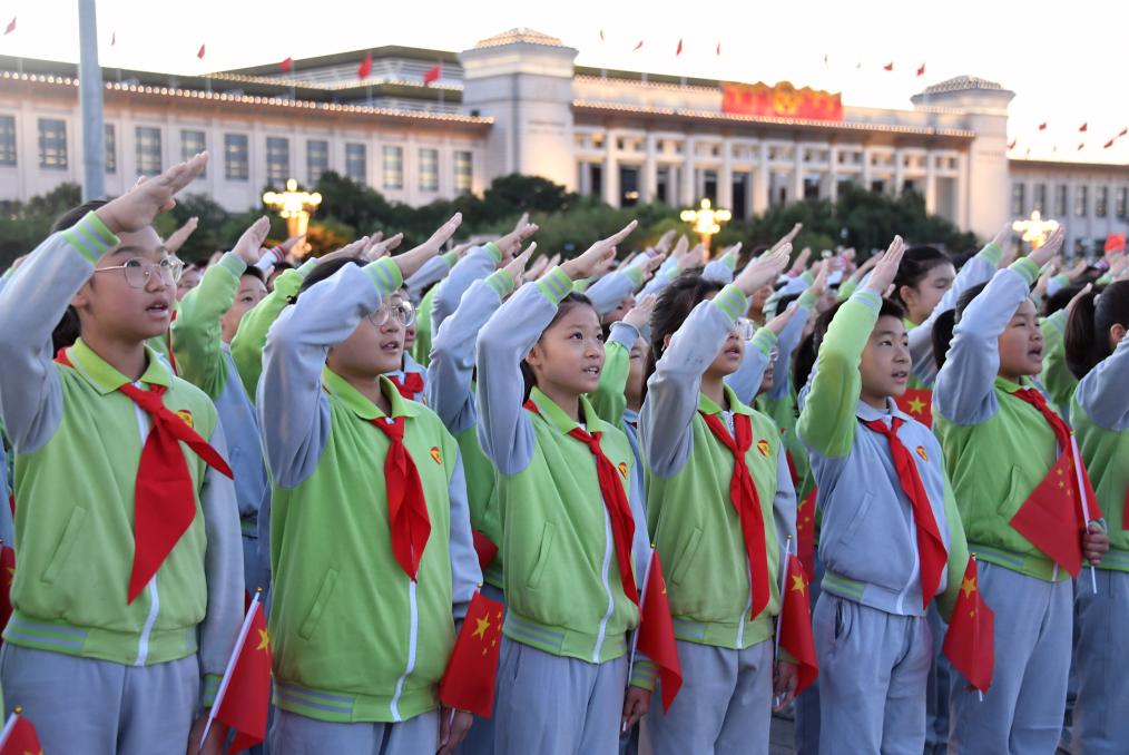 10月1日4时许,华灯相伴,12.3万人聚集在首都北京天安门广场,共同等待着那一抹升起的“中国红”,炽热的期盼紧贴着祖国的心房。