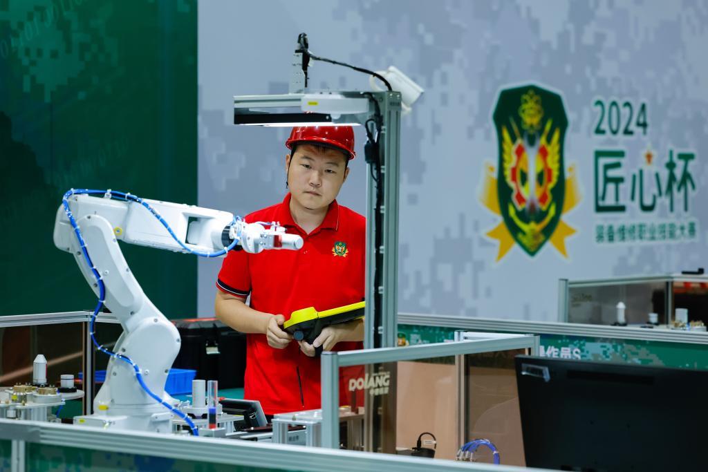 2024年9月24日,四川彭州,选手参加工业机器人系统操作员比赛。 新华社记者 沈伯韩 摄