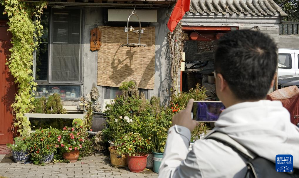 10月12日,一名游人在钟楼湾胡同内参观拍摄。新华社记者 李欣 摄