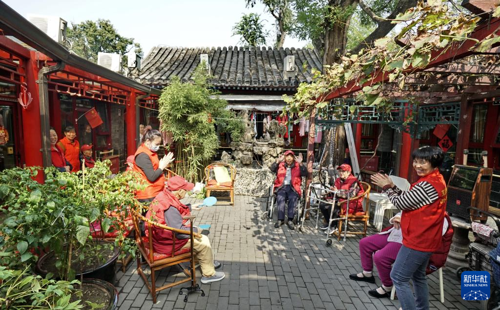 10月12日,钟楼湾胡同的老年人在社区内的四合院养老驿站休闲。新华社记者 李欣 摄