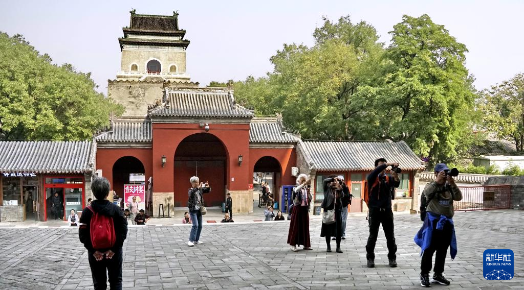 10月12日,游人在钟鼓楼一带游览观光。新华社记者 李欣 摄