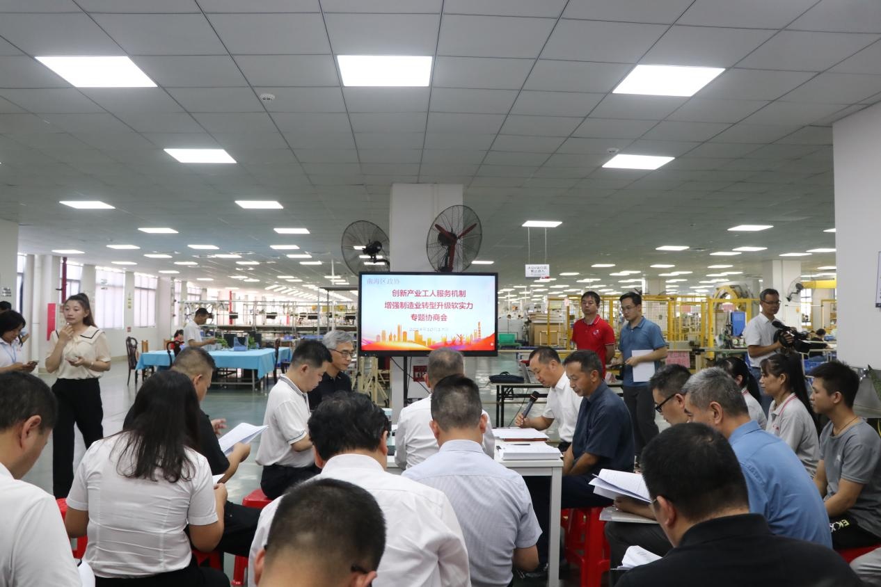 原来,这是南海区政协社法和民宗委会同区总工会,将工会界别政协委员提交的“创新产业工人服务机制,增强制造业转型升级软实力”提案确立为今年的议政协商主题,进行走访调研的一个场景。