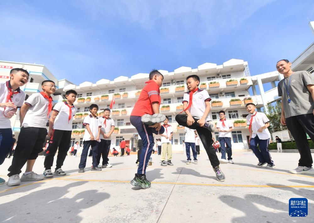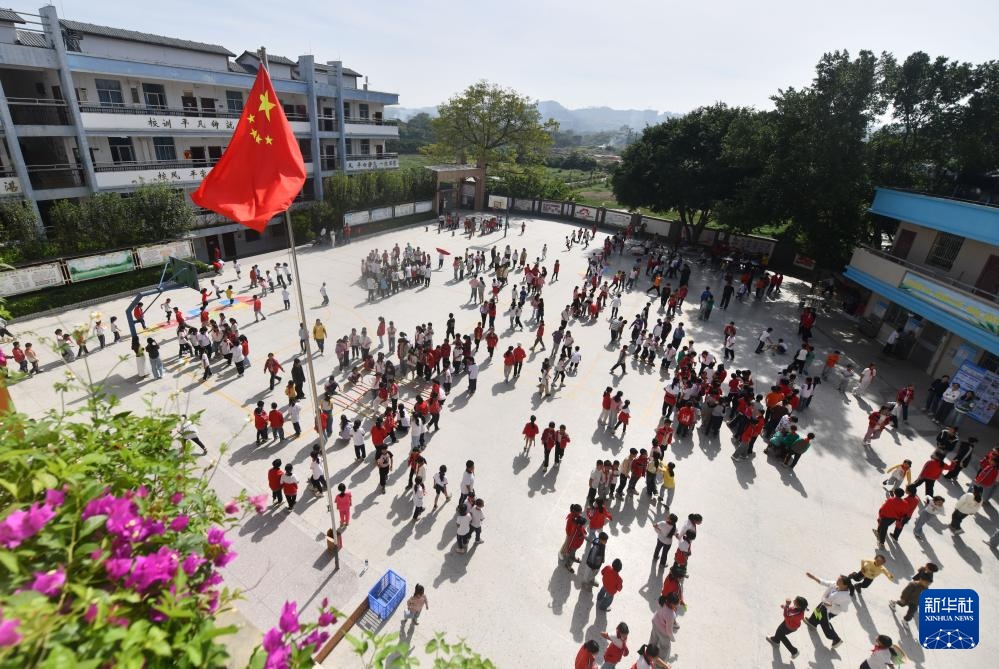 在梧州市平浪希望小学,学生们在体育大课间进行体育运动(10月25日摄)。新华社记者 黄孝邦 摄