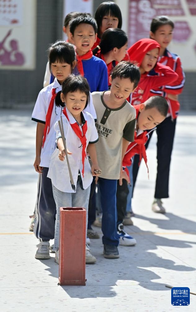 在梧州市平浪希望小学,学生们在体育大课间练习投壶(10月25日摄)。新华社记者 黄孝邦 摄