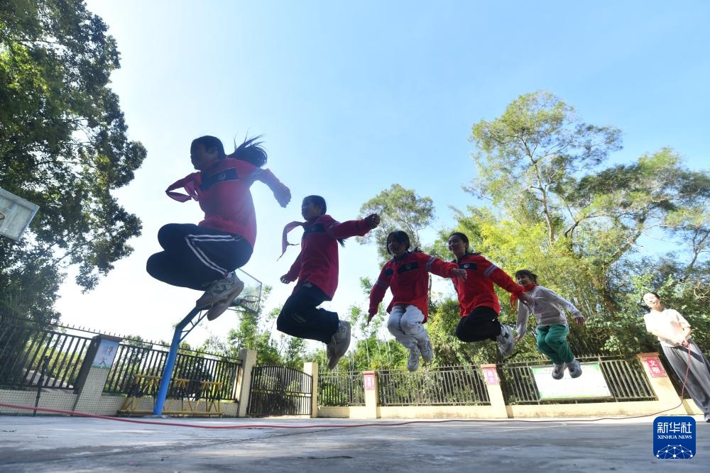 在梧州市大桥小学,学生们在体育课上练习跳绳(10月25日摄)。新华社记者 黄孝邦 摄
