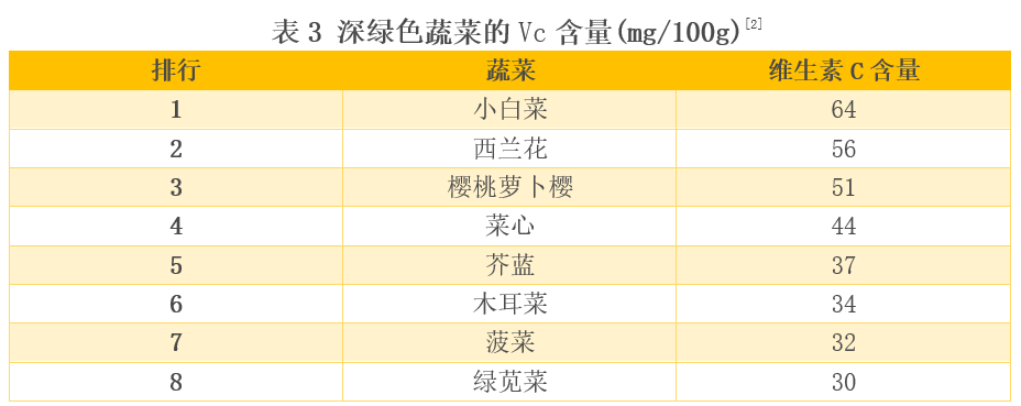 深绿色蔬菜很补Vc