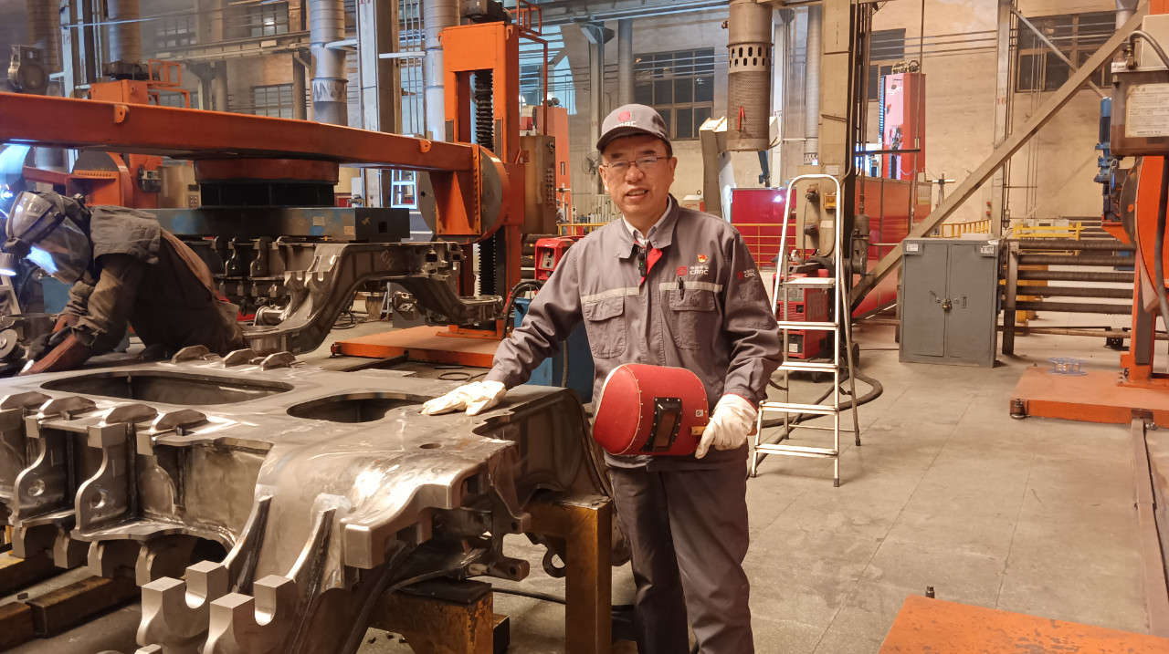 “扭杆座的弯道极多,而且内腔狭窄,操作空间十分受限,它承载着整车50吨的重量,每天要摆动上万次,任何一点瑕疵都可能威胁行车安全,所以我们必须拥有高超的焊接技艺和精益求精的工作态度……”