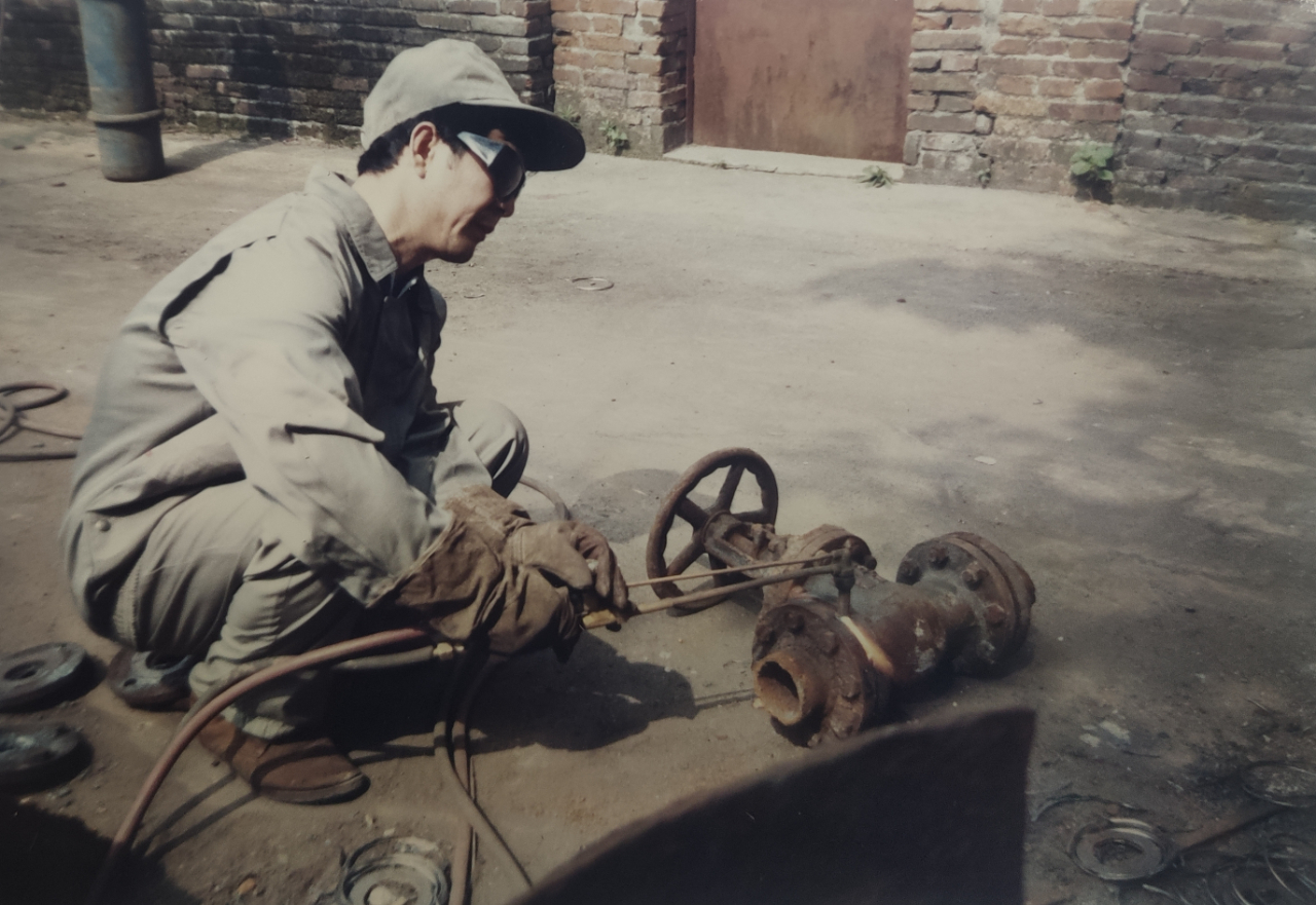 1991年,湘钢2号高炉大修,艾爱国为其进行管道焊接。
