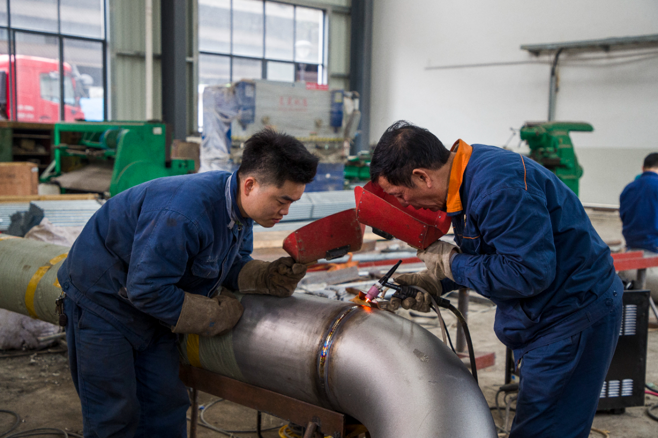 2021年3月,艾爱国带领徒弟给湘钢焦化钛合金管焊接。