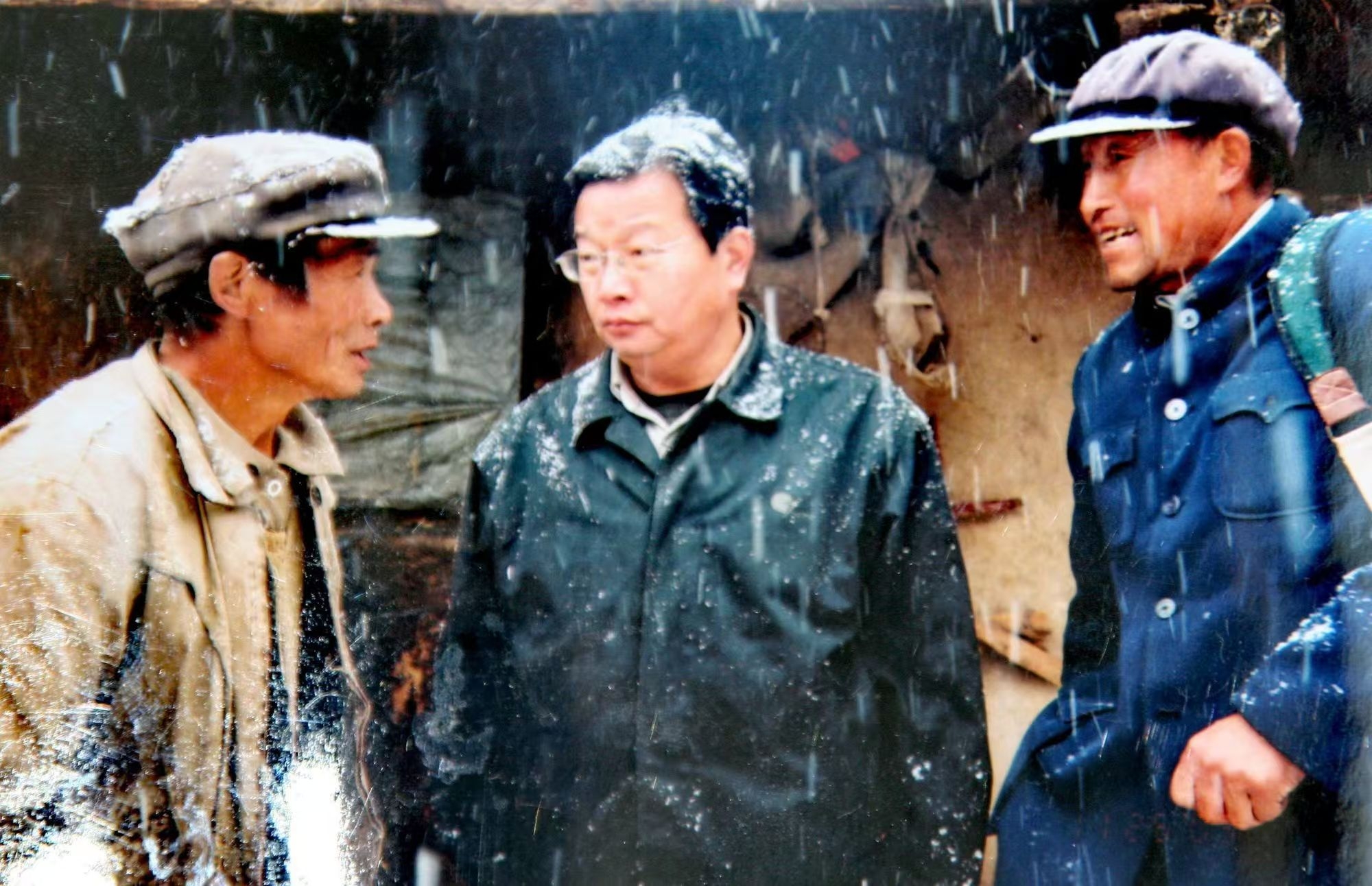 上世纪八九十年代,陈步烽(中)在隆德县乡村扶贫。(受访者供图)