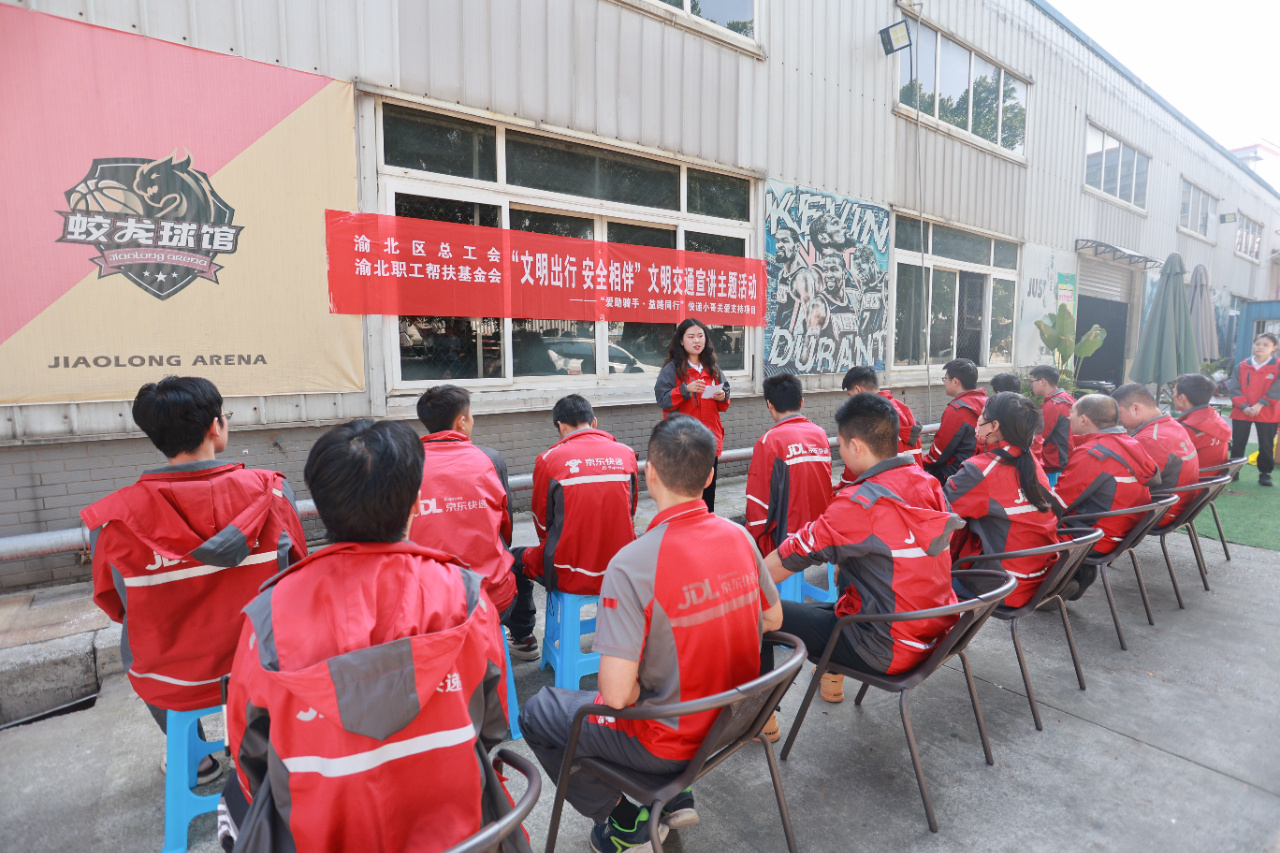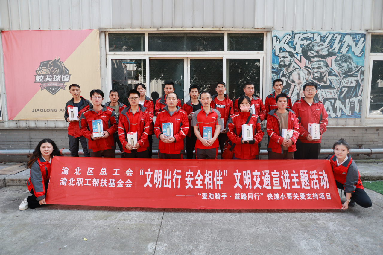 “双十一”即将到来,快递员们也即将进入一年中最忙碌的时段,为增强他们的交通安全意识,当天,渝北区总工会、渝北职工帮扶基金会还在京东快递重庆回兴营业部举办“文明出行 安全相伴”文明交通宣讲主题活动。