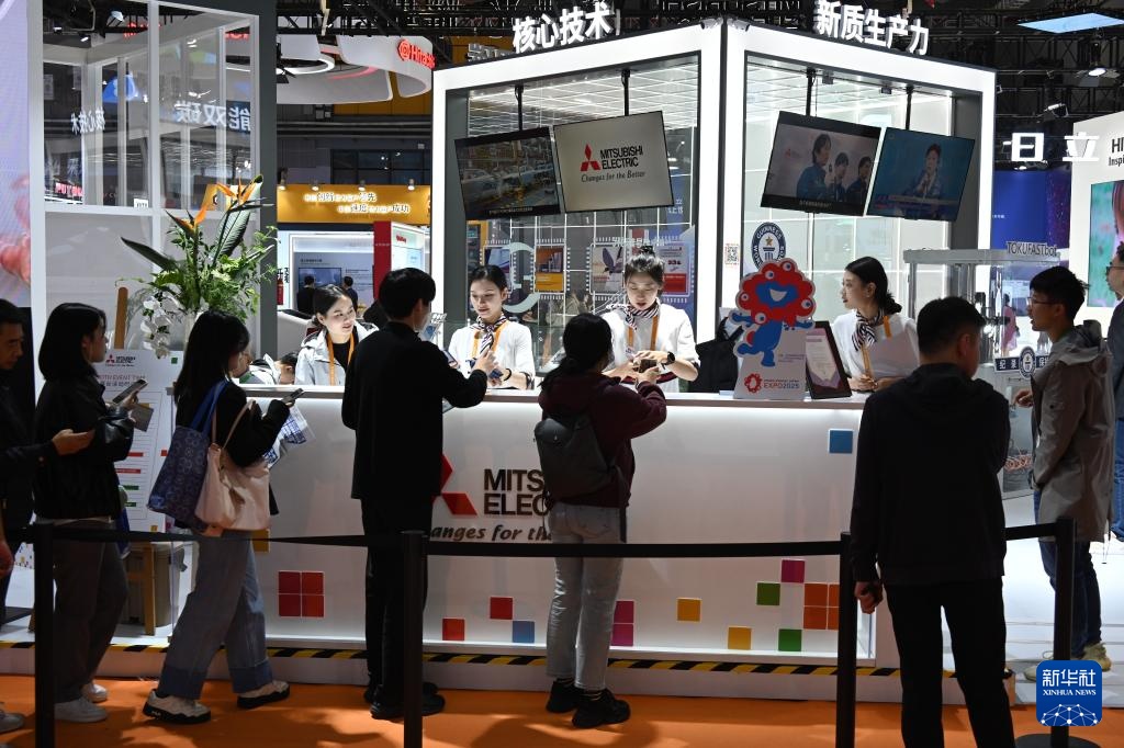 11月8日,参观者在第七届进博会技术装备展区排队参加展台活动。新华社记者 黄晓勇 摄