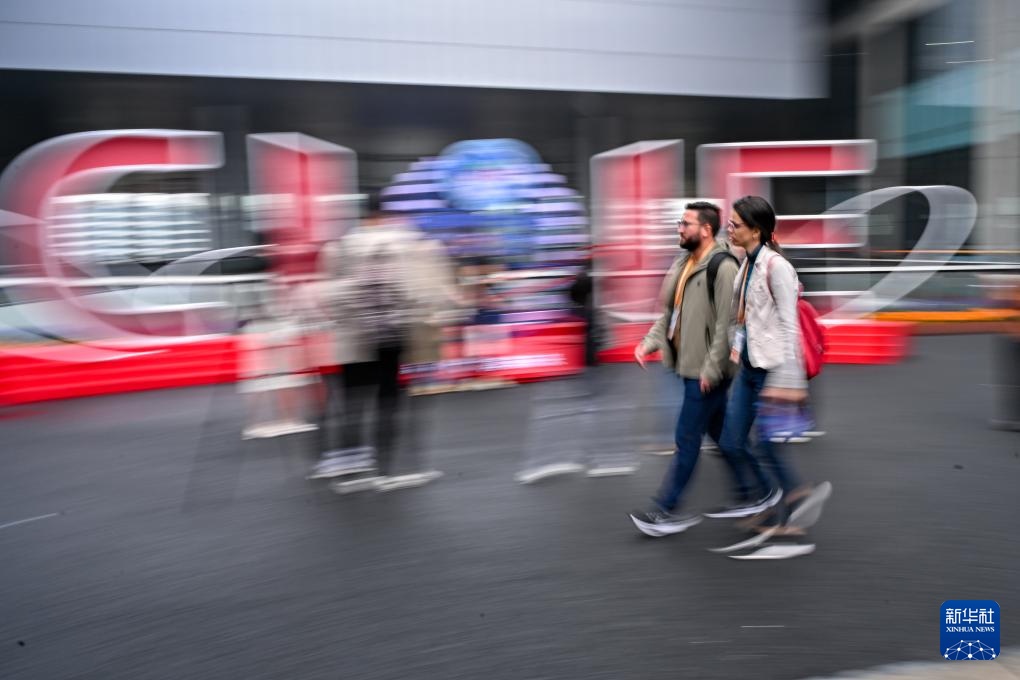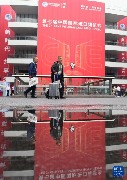 11月10日,参会者在国家会展中心(上海)展馆间的通道上行走。新华社记者 徐亮 摄