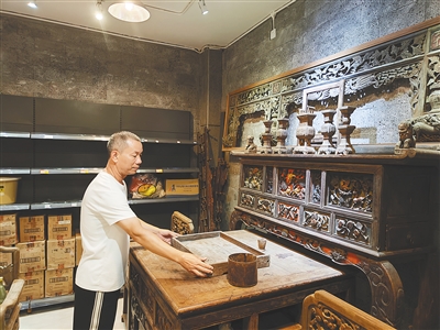 在收藏的过程中,符集玉逐渐意识到传承黄花梨家具制作工艺的重要性,于是学习制作黄花梨家具。今年5月,他牵头创作的黄花梨面条柜在第二十届中国(深圳)国际文化产业博览交易会“中国工艺美术文化创意大赛”中获得金奖。“未来,我打算筹资建设展览馆,让这些承载着传统文化的藏品有一个对外展示的地方。”