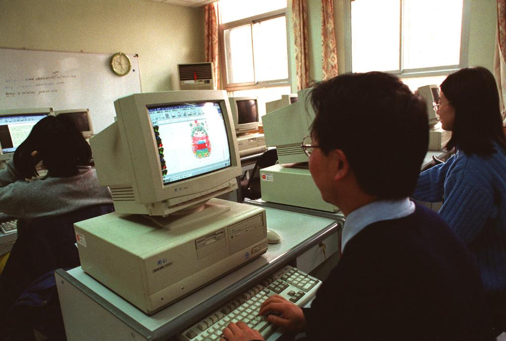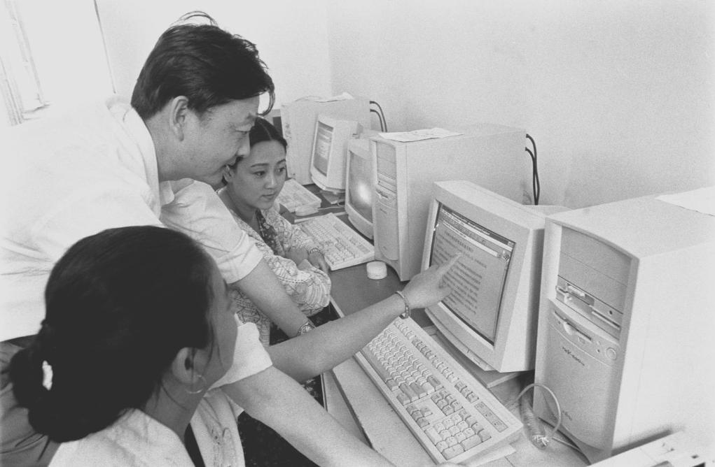 1997年12月,北京师范大学的学生用电子邮件发送电子贺年卡。新华社记者 王海燕 摄